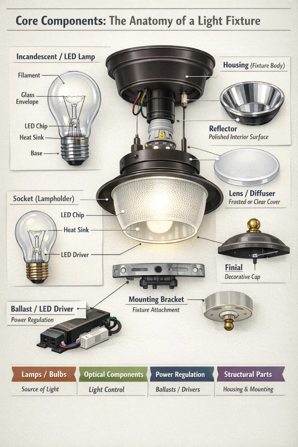 Kernekomponenter: Den primære anatomi af en lysarmatur