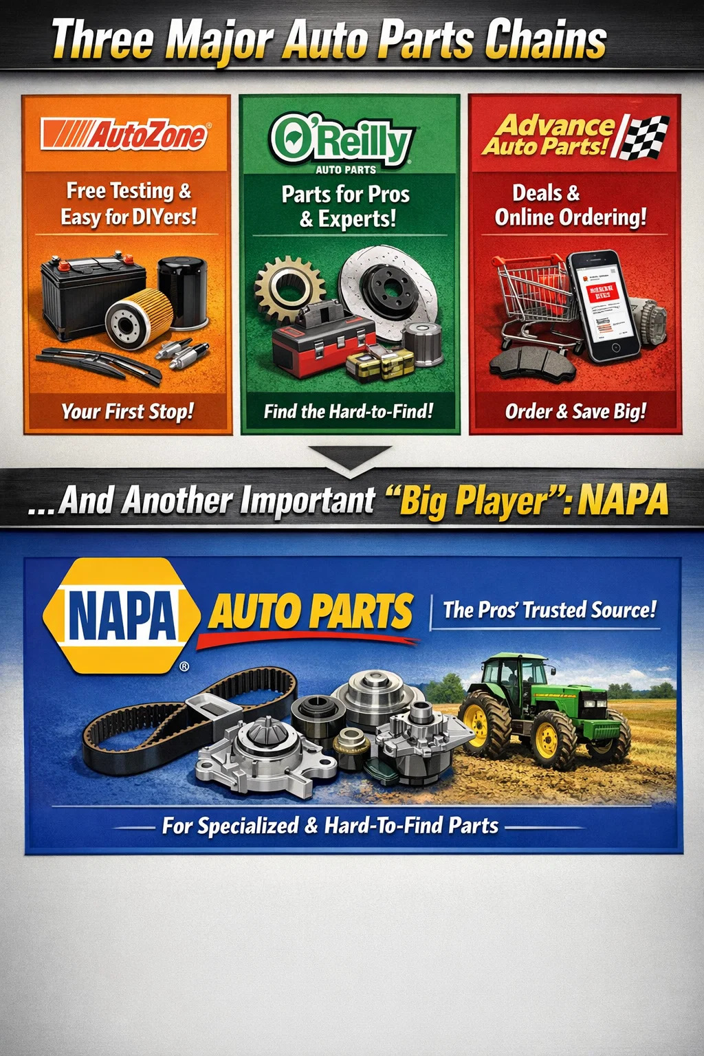 Selvom de tre nævnte ovenfor ofte omtales som de "tre store", er NAPA Auto Parts også en ekstremt vigtig tilstedeværelse. Det betjener primært professionelle reparationsteknikere og markedet for landbrugsmaskiner. Hvis du ikke kan finde en særlig specialiseret autodel hos de "tre store", er NAPA ofte det sidste håb.