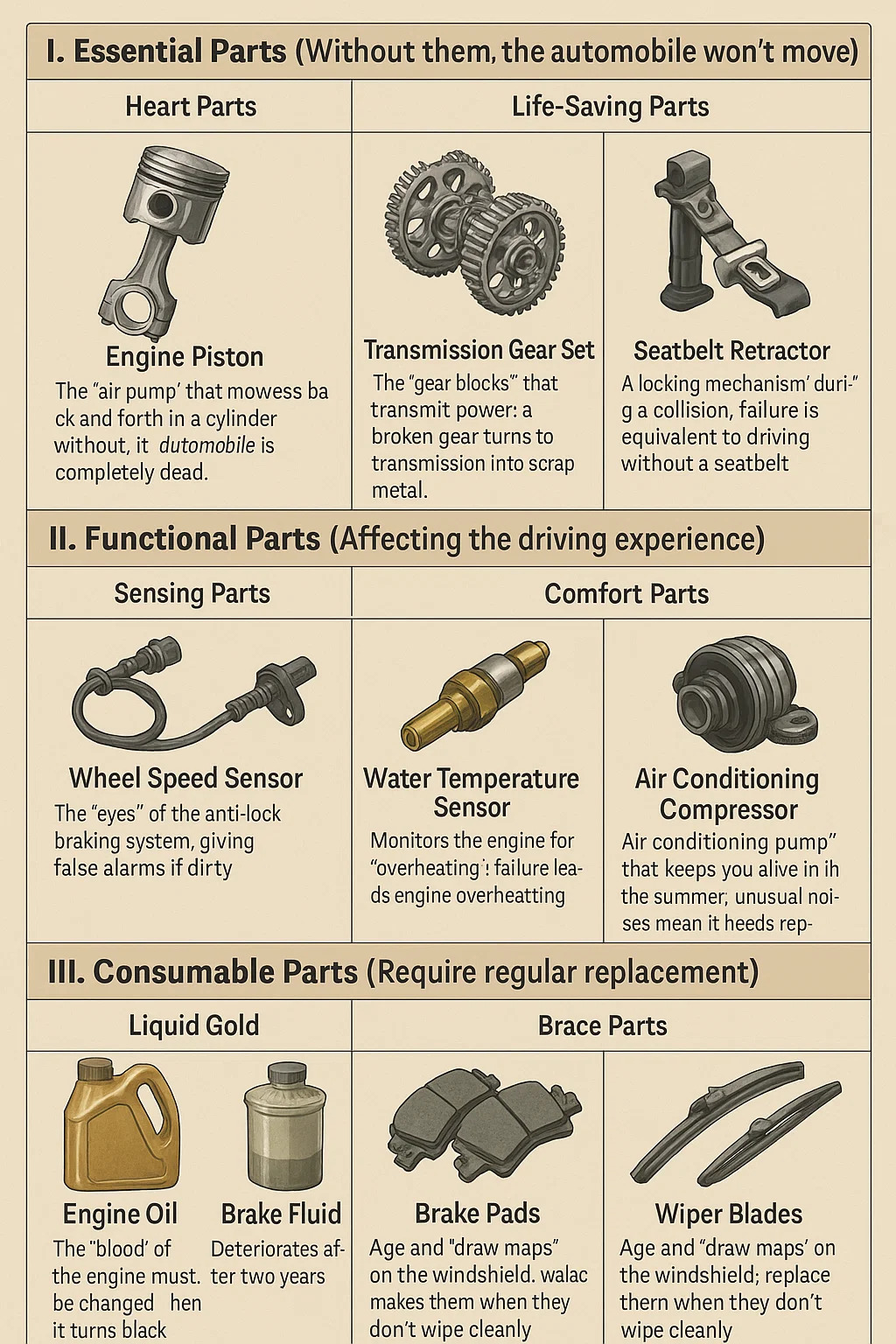 I. Vigtige dele (Uden dem vil bilen ikke bevæge sig)